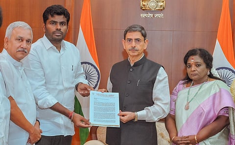 பாஜக மாநிலத்தலைவர் அண்ணாமலை மற்றும் தமிழிசை சௌந்தரராஜன் உள்ளிட்ட பாஜகவினர், சென்னை ஆளுநர் மாளிகையில் தமிழ்நாடு ஆளுநர் ஆர்.என்.ரவியைச் சந்தித்தனர்.