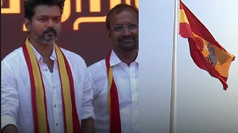 தமிழக வெற்றிக் கழகத்தின் கொடியை ஏற்றினார் விஜய்.