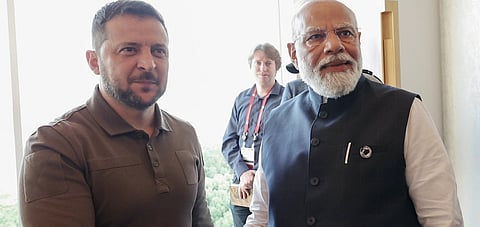 கடந்த ஜூன் 13 முதல் 15 வரை இத்தாலியில் நடந்த 50-வது ஜி-7 உச்சி மாநாட்டில் சிறப்பு விருந்தினராகக் கலந்து கொண்டார் பிரதமர் மோடி. அப்போது உக்ரைன் அதிபர் வொலோடிமிர் ஜெலென்ஸ்கியை அவர் சந்தித்துப் பேசினார்.